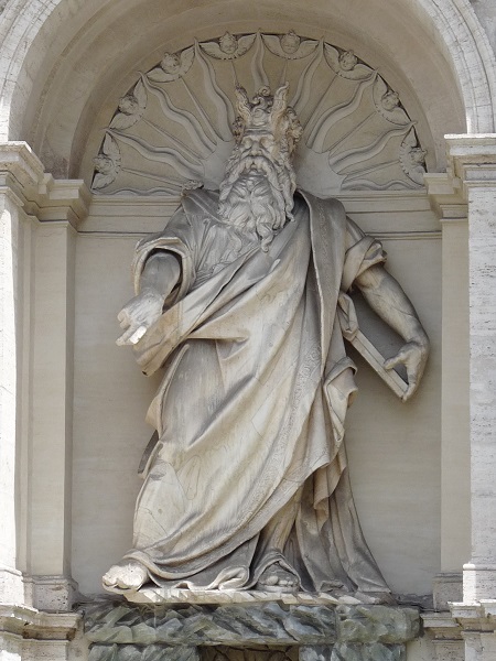 Gegenüber der Kirche Santa Maria della Vittoria steht  ein Brunnen, von dem Moses mit feurigen Augen und ausgestreckter Hand herunterblickt. Dass dieser finster dreinblickende Mann am Brunnen Moses sein muss, sieht man daran, dass er mit Hörnern dargestellt wird – ein Zeichen dafür, dass er Gott gesehen hat. Der berühmte Moses von Michelangelo ist nämlich auch „gehörnt“ (in der Kirche San Pietro in Vincoli al Colle Oppio). Der Moses des Bildhauers hier auf dem Bild wurde zu Lebzeiten des Künstlers heftig kritisiert und mit Michelangelos Moses verglichen. Bei dem Vergleich schnitt der Brunnen-Moses einfach wesentlich schlechter ab. Der Bildhauer soll so sehr unter der Kritik gelitten haben. So sehr, dass er sich schließlich das Leben genommen hat und vor Scham gestorben ist. Traurig, oder?
