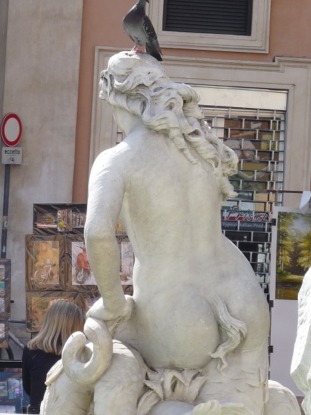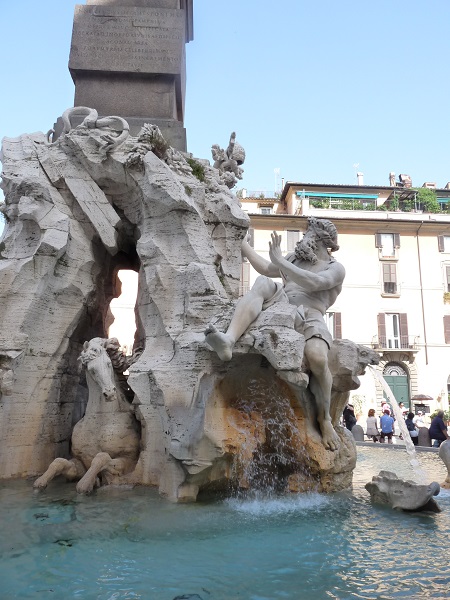 Der Vierströme Brunnen (Fontana Quatro Fiumi) auf der Piazza Navona ist vor allem imposant. Mit den frisch renovierten Flussgöttern (die kräftigen Männer stellen die Flüsse Ganges, Nil, Donau und Rio de la Plata dar) möchte man sich lieber nicht anlegen. Irgendwie wirken die sich verrenkenden Figuren fast schon einschüchternd auf mich. Am Ende der Piazza Navona gibt es dafür einen lustigeren Brunnen. Da rekeln sich Nyphmen mit kleinen Pferdeschwänzchen und ringen mit Fischen und Schlangen. Mich wundert nur, dass der Vatikan diese doch eher sinnlich-erotischen Brunnenfiguren gesponsort haben soll?