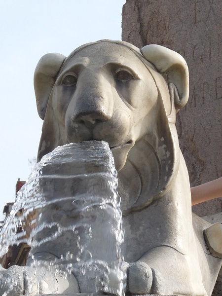 Und direkt um den unübersehbaren Obelisken auf der Piazza di Popolo herum, speien schließlich noch ein paar imposante Löwen ihr Wasser in die Gegend.