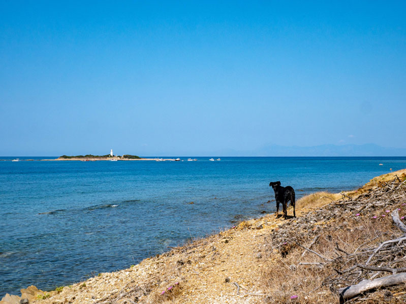Hin und wieder liegt ein Fischerboot versteckt am Ufer. Ein paar Fischer scheinen im Nationalpark noch fischen zu gehen. Von nun an führt unser weg immer am Wasser entlang. Ich liebe es! Küstenwege sind sowieso die schönsten Wanderwege überhaupt – finde ich. Bald stehen wir vor der Insel Licosa, die ich schon von oben erspäht hatte. Von hier aus sieht sie relativ nah aus, doch Petra meint, es seien schon noch einige Kilometer bis dorthin. Ein paar Boote haben direkt vor der Insel geankert. Dort planschen und schnorcheln jetzt vermutlich die Leute, denen das Boot gehört. Oder vielleicht sind auch ein paar Fischerboote darunter, die versuchen etwas zum Mittagessen zu fangen. Ohne Fernglas bin ich mir da nicht so sicher.
